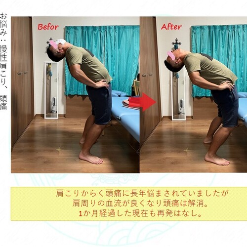 ご丁寧な対応と施術で、身体がとても楽になりました。ありがとうございます。今後も通いたいと思います。