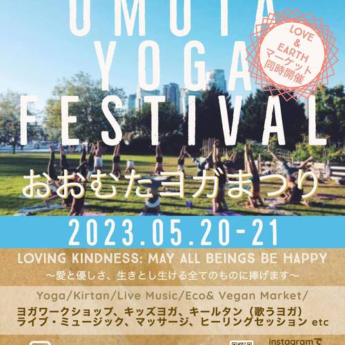 5月20ー21日の2日間、開催地有明海が展望できる甘木山「おおむたハイツ」のデッキスペースのリニューアルと大型コンベンションセンター開幕に合わせ、大型ナチュラル&エコ・マルシェ と、【子供からお年寄りまでヨガと健康と地球にやさしい環境作りの町】を目指して、ヨガのシンボル「ॐ om」オーム(タ)市にちなみ、地域シンボルでもある有明海を眺めながら、開放的な空間の中、大牟田市初ヨガとマルシェを通じてライフスタイルで健康を目指すヨガ祭り「OMUTA YOGA FEST 第一回目が始まります。