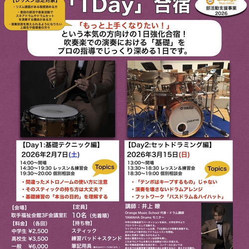 今年2回目のレッスンは「疲れない叩き方」。プロドラマーバディ・リッチやディヴ・ウェックルの動画を見せてもらい、滑らかな流れるような手の動きに感動しました。井上先生のプレイも素晴らしいです。実際に腕の動かし方や背中の筋肉を使う叩き方をドラムで練習しました。今年の課題が明確になり、頑張ろうという気持ちが高まりました。ありがとうございました。