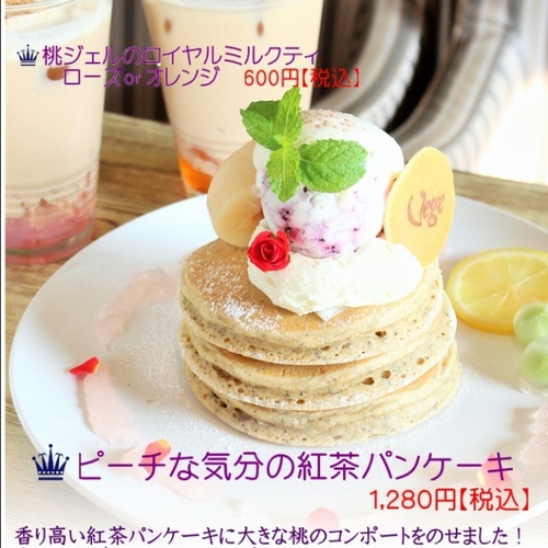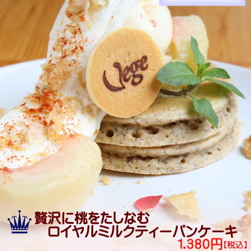 8/5より「贅沢に桃をたしなむロイヤルミルクティーパンケーキ」 始まります。