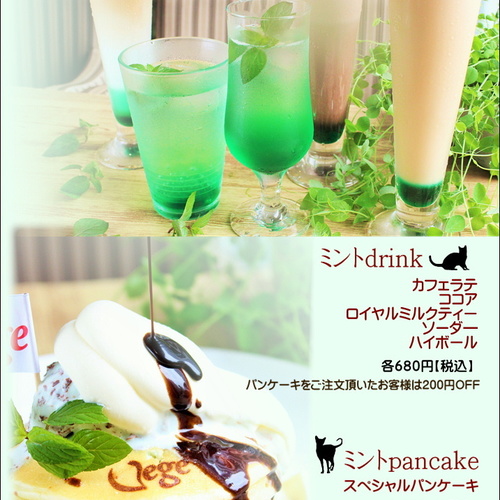 チョコミントアイスのスペシャルパンケーキ&Mintドリンク