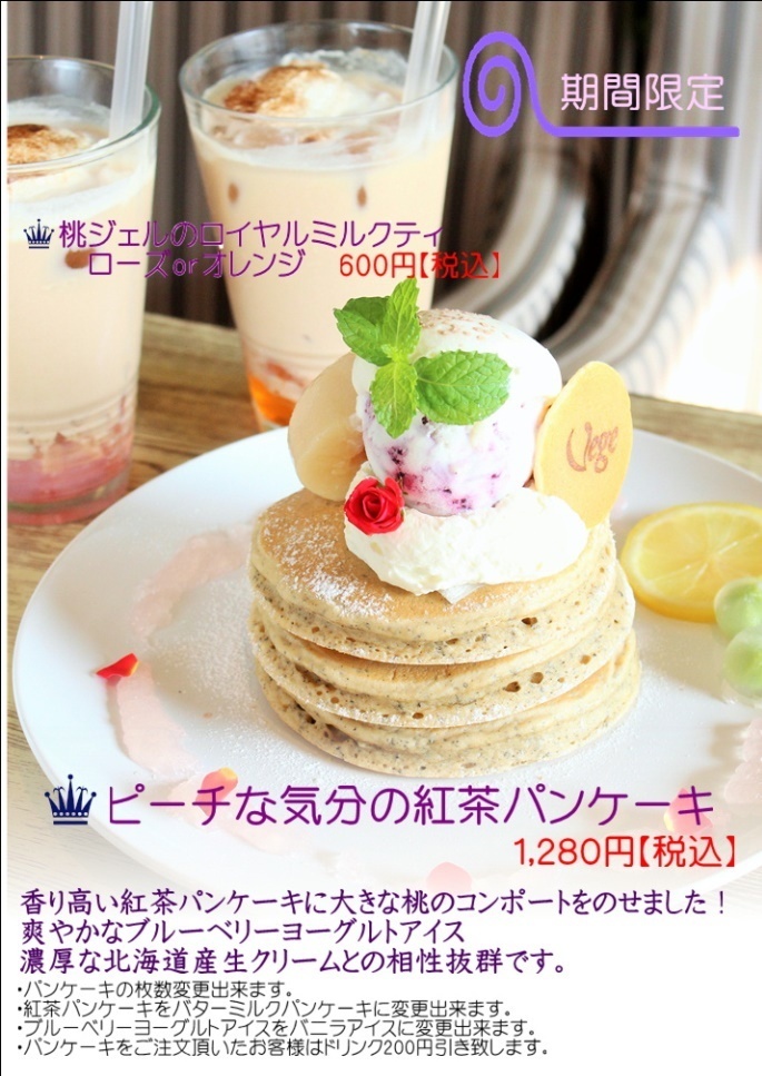 「ピーチな気分の紅茶パンケーキ」「ももジェルのロイヤルミルクティー」スタート