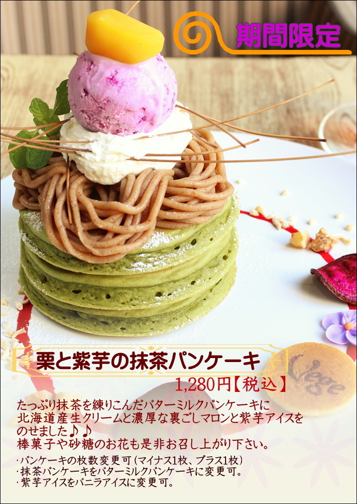 抹茶パンケーキと栗と紫芋ヽ(^。^)ノ