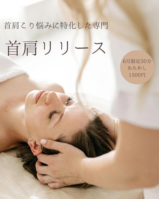 30分首・肩をリリースして血行を促進し緩めるとバランスが整いかなり姿勢の調整になります。イライラも少なくなりいい事ばかり!