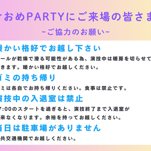 1月24日(土)のあけおめPARTYに来られる お客様へお知らせとお願い📢