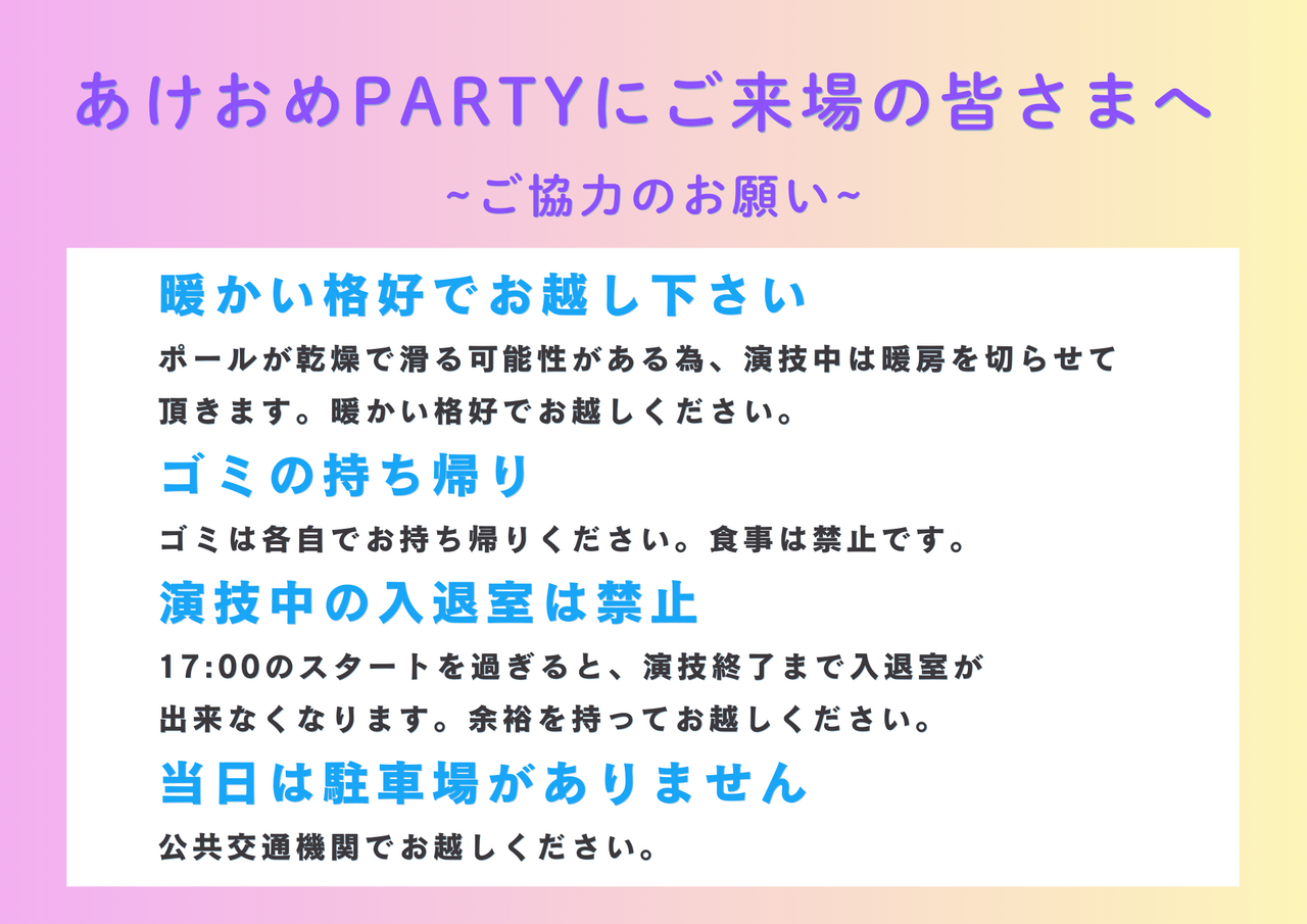 1月24日(土)のあけおめPARTYに来られる お客様へお知らせとお願い📢