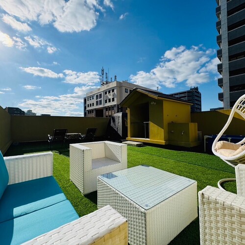 平尾、薬院近くにある都会のオアシスと言える非日常的空間を満喫できます。屋上付特別室で大人の社交場のようなイメージで会話もパーティの一部として弾みます。リモートワークはもちろん、オシャレなキッチンやジャグジーもあるので用途は拡がります。料理教室もできちゃいます。最寄り駅は平尾駅になります。バス停徒歩1分