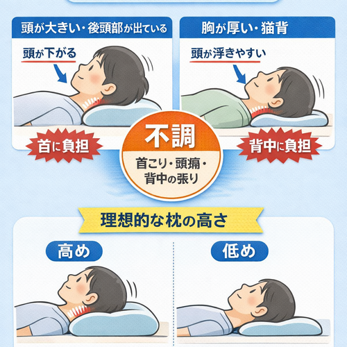 頭部と胸郭の大きさが仰向け姿勢に与える影響|枕の高さと首・肩の不調の関係