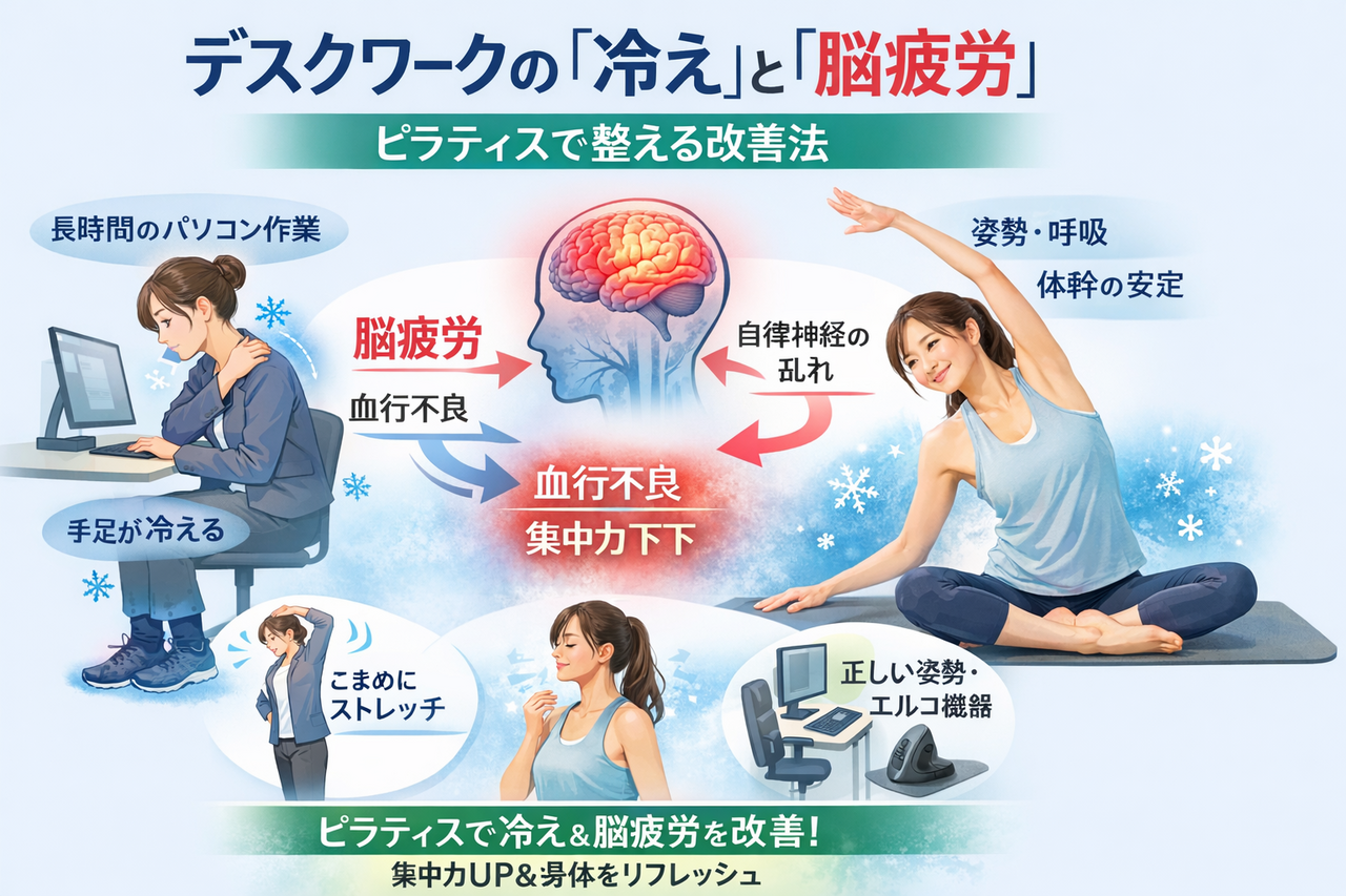 デスクワークによる冷え・脳疲労の原因とは?姿勢と自律神経を整えるピラティス的対策