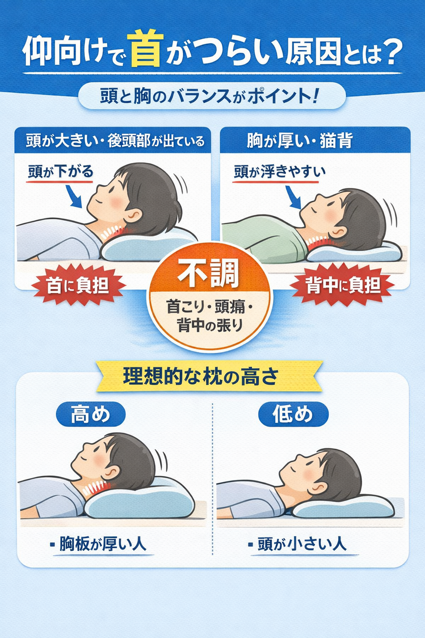 頭部と胸郭の大きさが仰向け姿勢に与える影響|枕の高さと首・肩の不調の関係