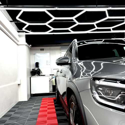 ③明るいヘキサゴンライトで汚れや傷がわかりやすく塗装の状態をしっかり確認しながら洗車が出来る。