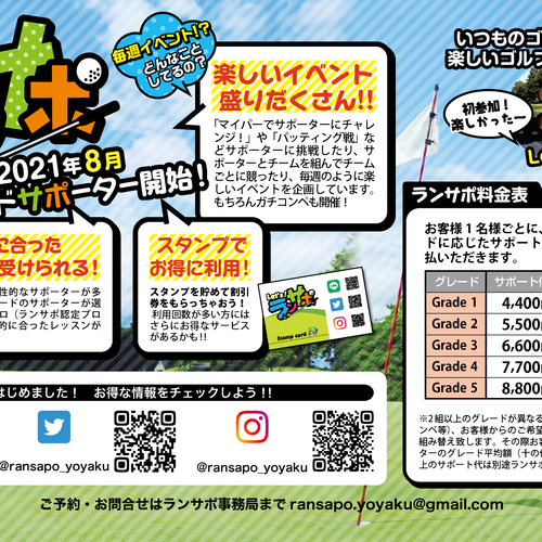 様々な個性を持ったサポーター1名が加わり18ホールをプレーします。