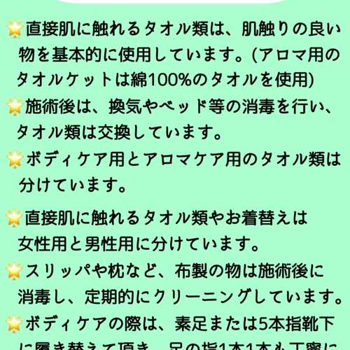 施術歴10年、おひとりおひとりのお身体の状態としっかり向き合い、イタ気持ちいい力加減で施術のスピードや強弱など意識し、じっくり丁寧にケアさせて頂いています。