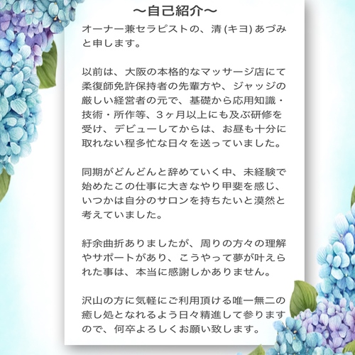 数あるサロンの中より、当店を見つけて下さり、誠にありがとうございます。