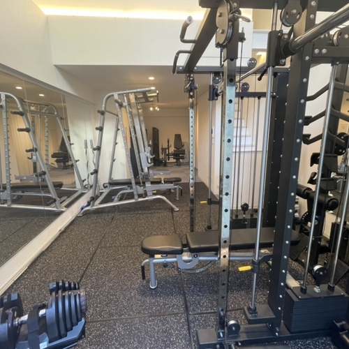 当ジムはパーソナルトレーニングができるプライベートジムとしてトレーナーとマンツーマンでトレーニングができます。ジムエリアはホワイトとブラックで統一され、天井が高く日差しが差し、清潔感のある洗練された空間になっております。