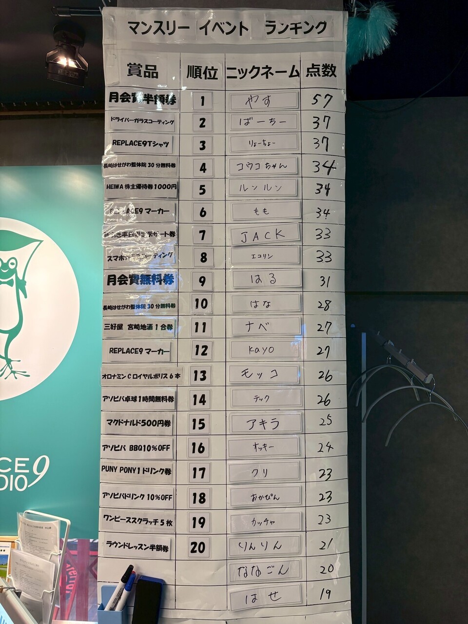 第二回マンスリーイベント現在のランキング&協賛品のご紹介!