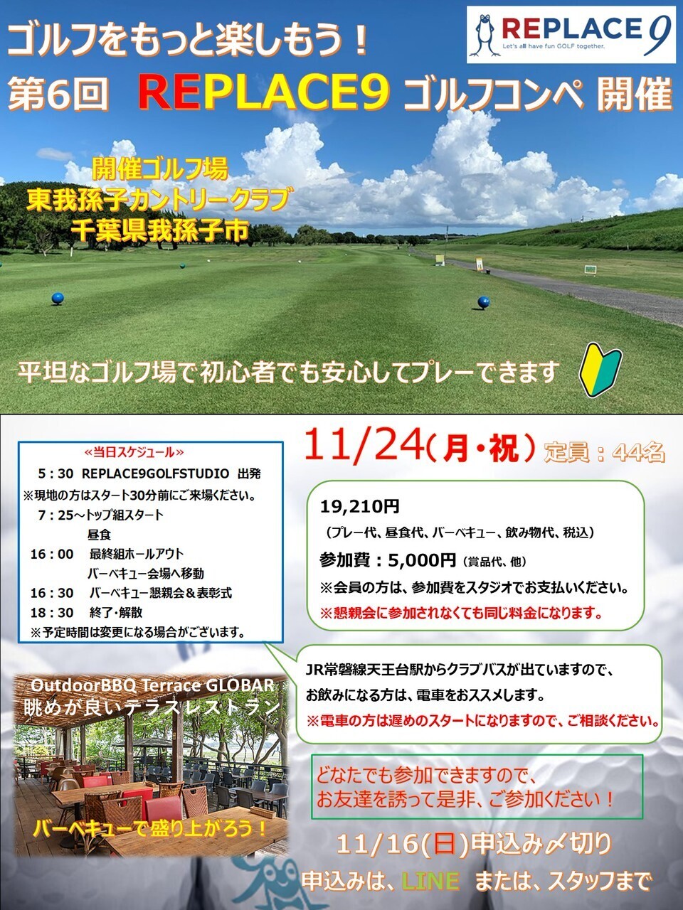 【締め切り迫る】11/24第6回REPLACE9ゴルフコンペ!!