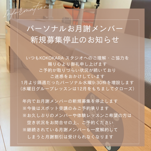 【NEW】土日パーソナル体験レッスン新規受付停止のご案内
