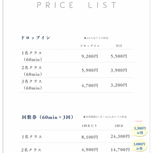《Price List 料金表》