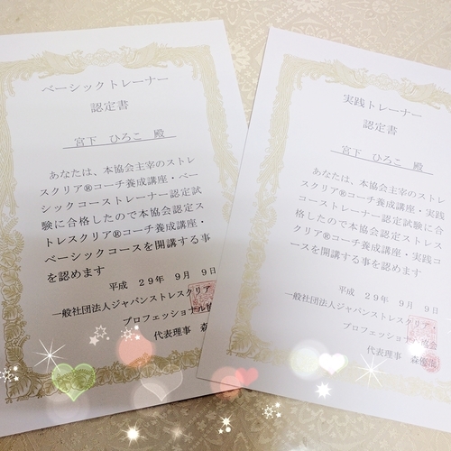 ストレスクリア(R)コーチングのトレーナーに合格!