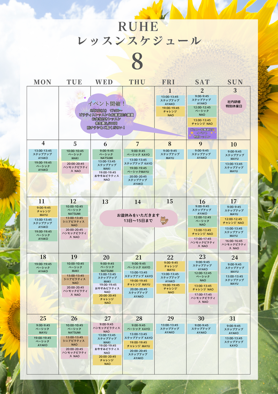 8月のグループレッスンのご案内🎆