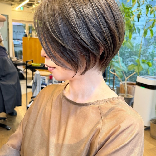 絶壁解消×襟足美人×丸みショートボブ×グレージュ