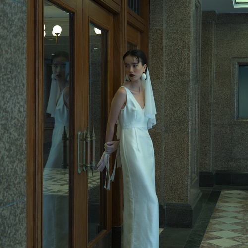 また、実際にフィッティングをしてみると、シルエットがとても美しく見えるようにデザインされており、着た瞬間に、これだっ!と思いました。