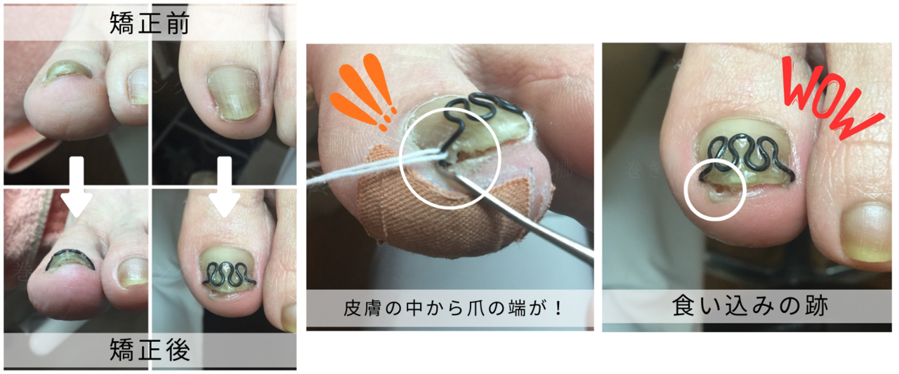 【巻き爪矯正】20年の深爪。皮膚の奥に隠れていた爪の端。