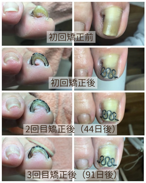 【巻き爪矯正】3回の矯正での変化をご覧ください