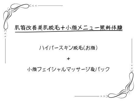 初回限定☆肌質改善美肌脱毛+小顔メニュー無料体験
