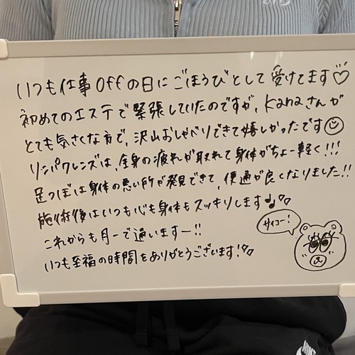 初めてのリンパクレンズ®️でドキドキしてましたが、リラックス出来るように、沢山会話してくださったので、楽しみながら受けることができました♡