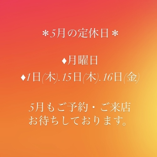 5月の定休日のお知らせ