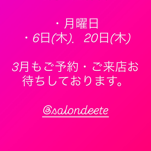 3月の定休日お知らせ