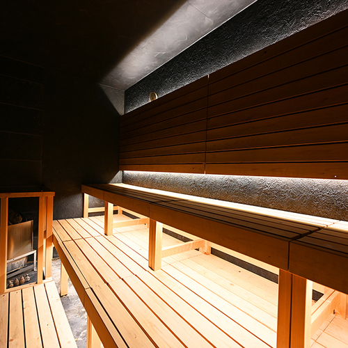 サウナルーム…サウナルーム内に使用された檜は、すべて1本の木から生成されたものを使用。檜の香り漂う空間です。