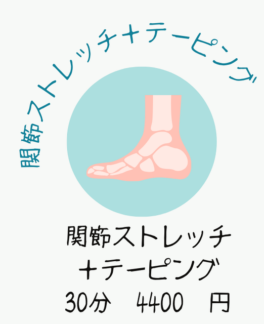 関節ストレッチ+テーピング+足爪ケアor角質ケア60分コース