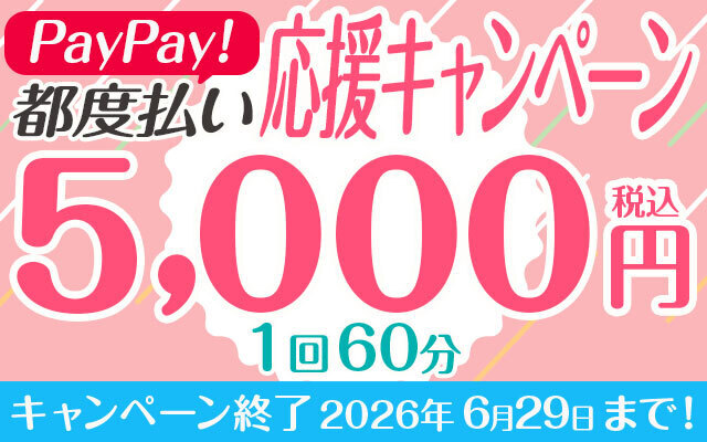 PayPay!都度払い応援キャンペーン60分利用 通常6,000円→5,000円!※カード決済は通常6,000円のままです。期間限定6月29日まで!