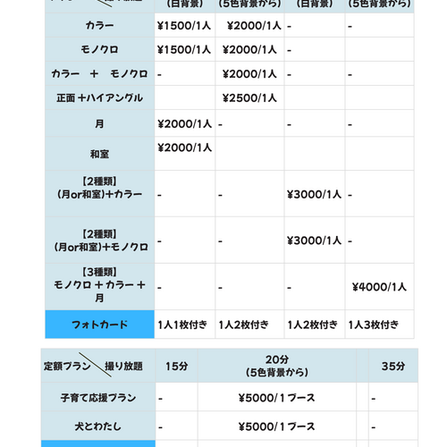 ★スタジオ入室の方は撮影されない場合でも料金を頂戴します(小学生以下のみでの利用不可)