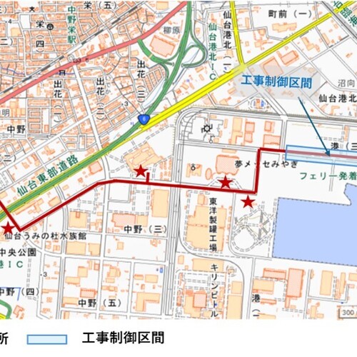 三井アウトレットパーク仙台港→夢メッセみやぎ→仙台港フェリーターミナル(折返し)→