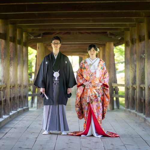 京都の街で、日本の美しい伝統衣装・着物を着て撮影できるプランです。料金には着物のレンタル料金・着付け・ヘアセットが含まれているのでご安心ください。