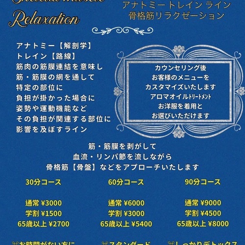 海外のお客様や芸能・著名人の施術経験を活かし、お客様一人一人のお身体に合わせてメニューをお作りいたします