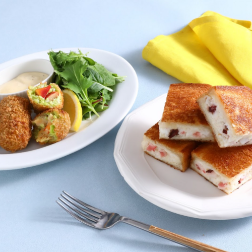【メニュー】タコとはんぺんの揚げパン/ホッキ貝と枝豆のコロッケ