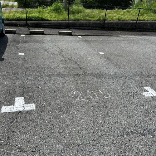 駐車場は敷地内の建物の前のスペースの『205』に駐車してください。