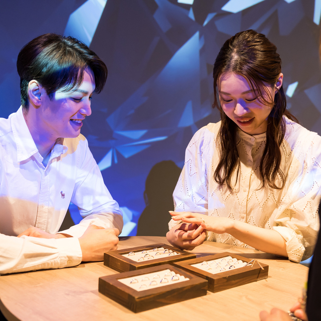 専門スタッフがご希望やご予算を丁寧にお伺いし、豊富なサンプルリングやリング写真をご覧いただきながら、ご検討いただけます。 お気軽にご相談いただける内容となっておりますので、「まだ具体的なイメージがない」という方も安心してご予約ください。