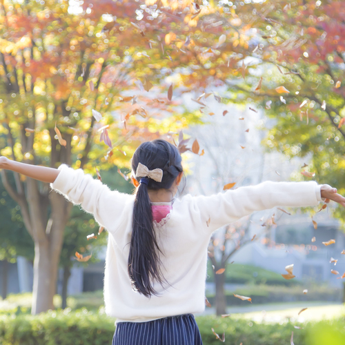 せーの‼ ばっさ~~ ☆ 落ち葉シャワー