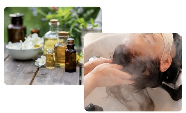 洗顔、フェイスマッサージ、パック、美容液、ローション、保湿ゲル、UVローション)→カット+ナシードオーガニックカラー→ヘッドスパ(ベーシックコース)→ハイパーインプルーブ→ブロー