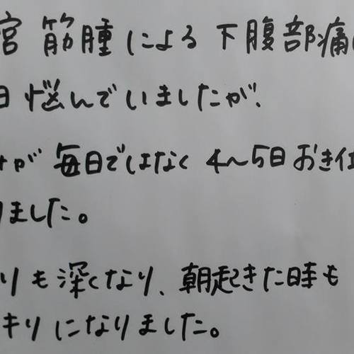 わずか2回の施術で毎日あった子宮筋腫5cmの縮まる様な痛みが、4から5日おきに