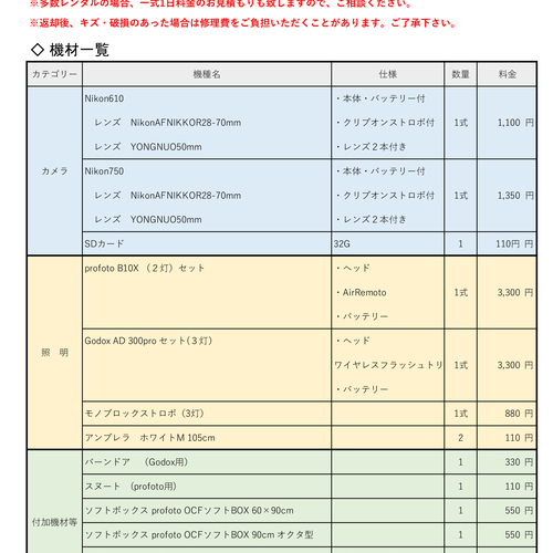 【映像・スチル】無料貸し出し機材・小物などの紹介
