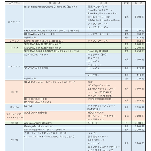 映像機材レンタル一覧 画像