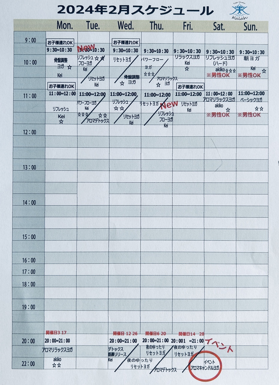 2月ヨガスケジュール