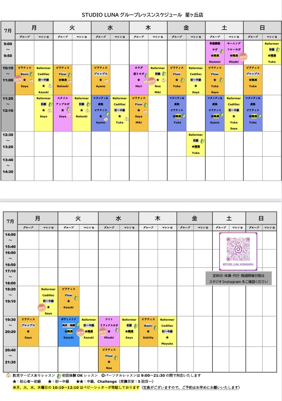 ☆7月スケジュール&休講・代行・隔週開催情報☆